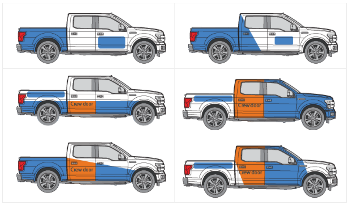 Truck Partial Wrap Package $2250 +tx Custom partial wrap to fit your vehicle. This is for exterior painted surfaces only.