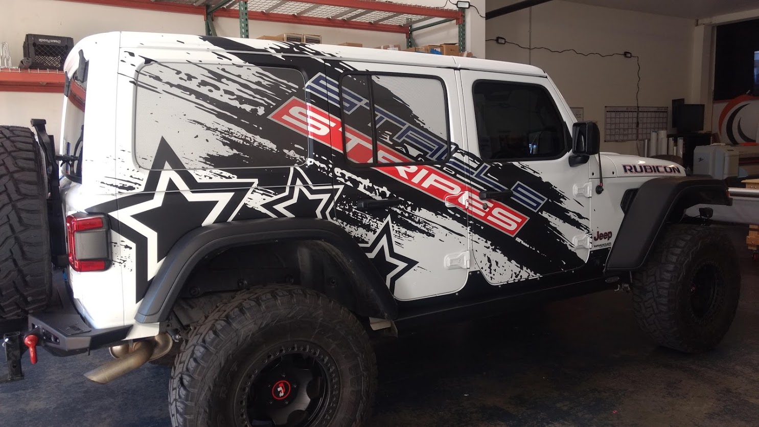 For if you would like to add a decal to the rear, or maybe the hood, or even both. We can add on to several other locations on your vehicle. (Custom vinyl decals to fit a 24”X24” space priced for each)